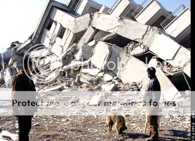 collapsed building.