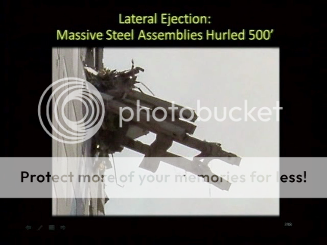 Buildings that are collapsing do not shoot heavy metal beams 500 feet.