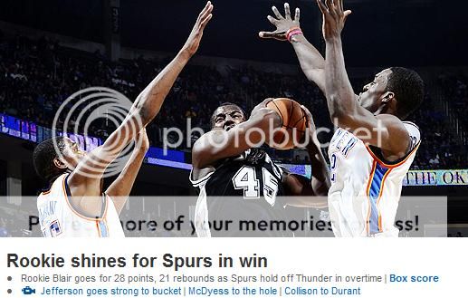 To echo something else; what an absolute godsend to have a guy like Blair fall to the Spurs with his character and skill and what a luxury to have the talent in Blair where you can sit one stud in Tim and get a 20-20+ game from Blair.