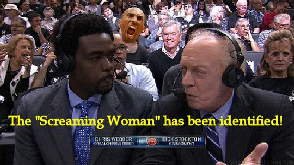 Sour Grapes. Millions of Spurs haters tuned in late in the game in hopes of seeing the Spurs lose. Instead of the celebration they were hoping for, they got an earful of Screaming Spurs Fan Lady providing the soundtrack to swift kick in the nuts.