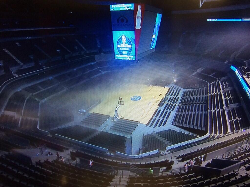 fucking hornets in 2008 WCSF with the hornet mascot jumping through a ring of fire. they couldn't put the ring out after the act, so they panic and hit it with fire extinguishers. the whole first half there is a hanging white cloud of smoke, and the players are slipping all over the place because the powdery byproduct the extinguishers left on the court.