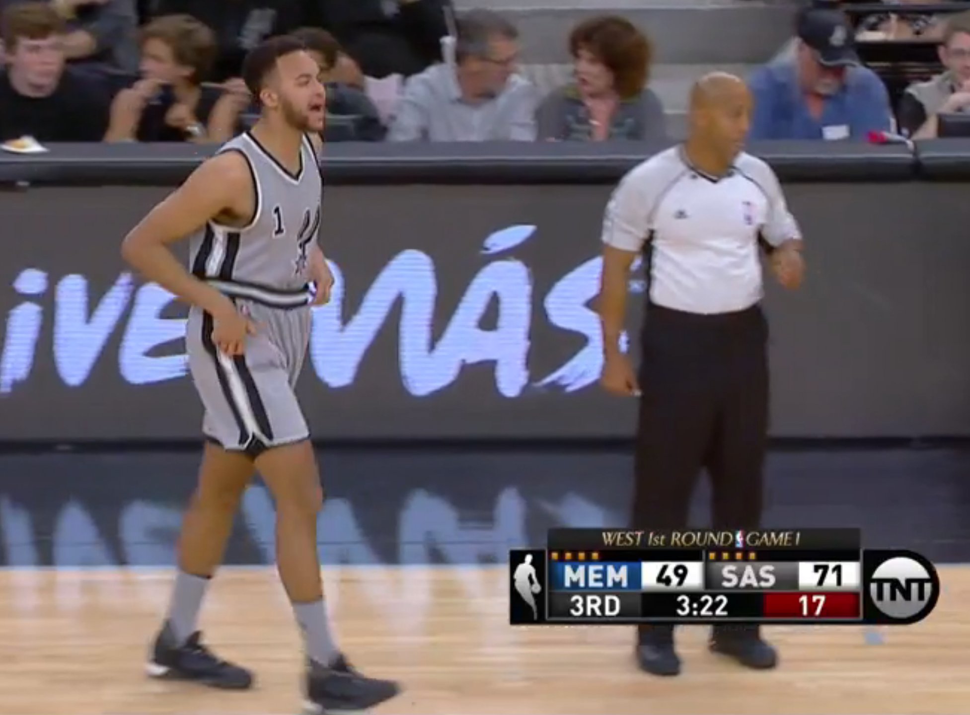 "Spurs rookie Kyle Anderson checks into first NBA game, gets called for not having jersey tucked in"
