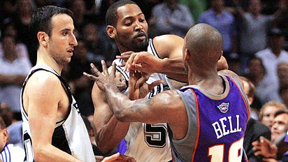 The Spurs are much stronger than the Lakers, and losing Stoudemire and Diaw will hurt a whole lot more than losing Bell. Even if the league decides to suspend Horry for two games, Phoenix will be affected much more.