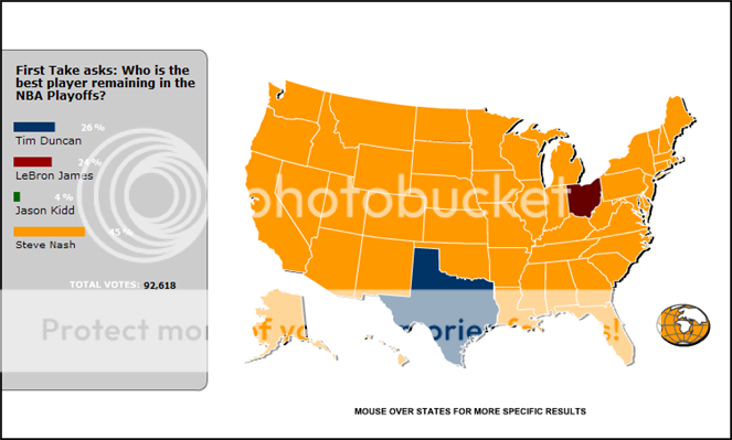 LOL yeah goes to who you just how uneducated people are out there that vote in these polls. How is a guy that can't play a lick of defense better than Tim Duncan? When Nash is on offense he controls so much and is great but on the other end of the floor he is totally useless. Look at Timmy last night. They double teamed him every time he touched it in the 2nd half. However not only did he get his guys open shots but he rebounded great and played amazing D all night. Tim is so much better than Nash it is a joke.