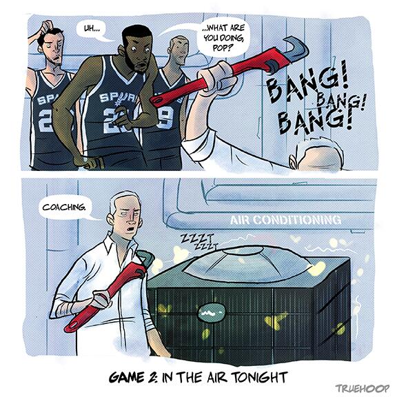 In a truly ironic twist that begs the pun, the Spurs turned up the heat on the Heat. In a bizarre display that harkened back to the NBA of the 70s and will give conspiracy theorists plenty of food for thought, an electrical outage caused the AT&T Center's air conditioning to bite the dust, turning the entire arena into a sauna. San Antonio's depth helped them to weather the heat, while Lebron was unable to perform at his peak level under the sweltering conditions, and attempting to do so left his teammates dumping him in a heap on the bench.